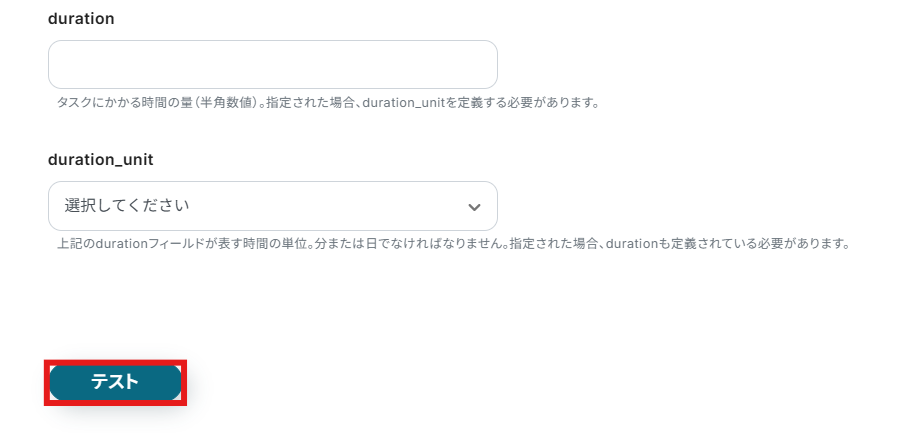 - Togglでタスクを作成するアクションでは、タスク名やプロジェクトなどの各フィールドに、前段のGoogle スプレッドシートから取得した値を引用して設定してください