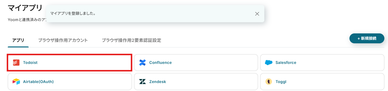 マイアプリにTodoistが追加されたことを確認出来たら、Todoistのマイアプリ登録は完了となります。