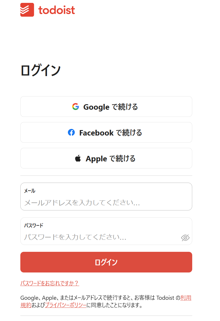 お手持ちのアカウントでTodoistにログインを行ってください。