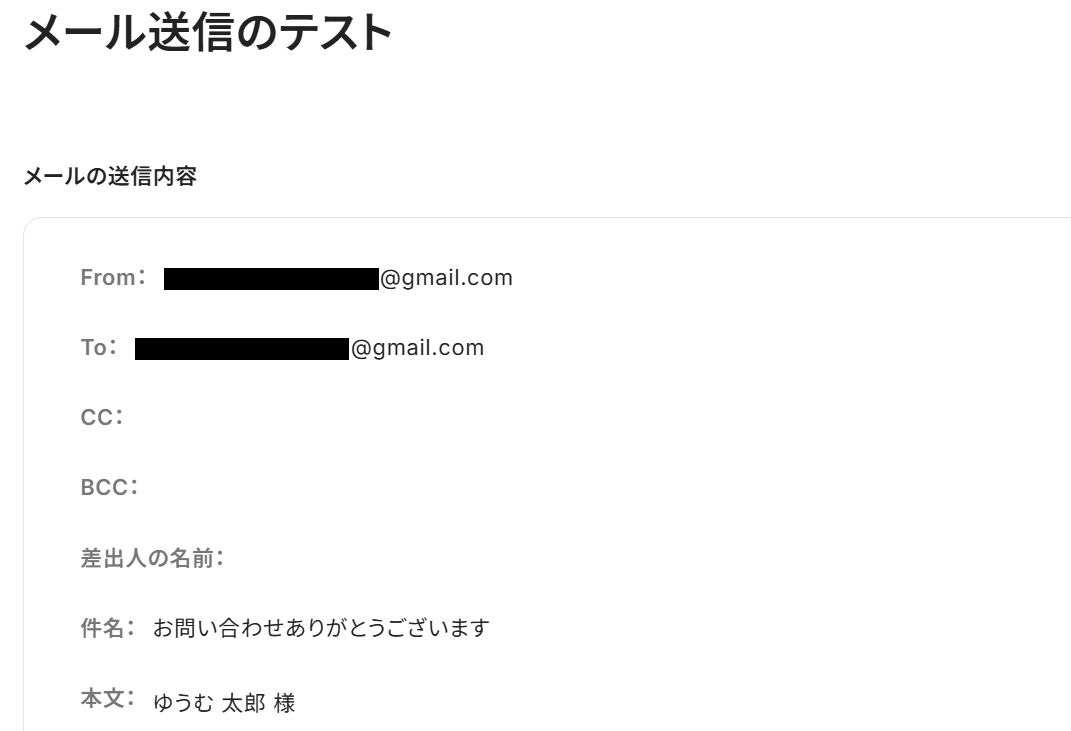 「次へ」をクリックするとメール送信のテスト画面になります。