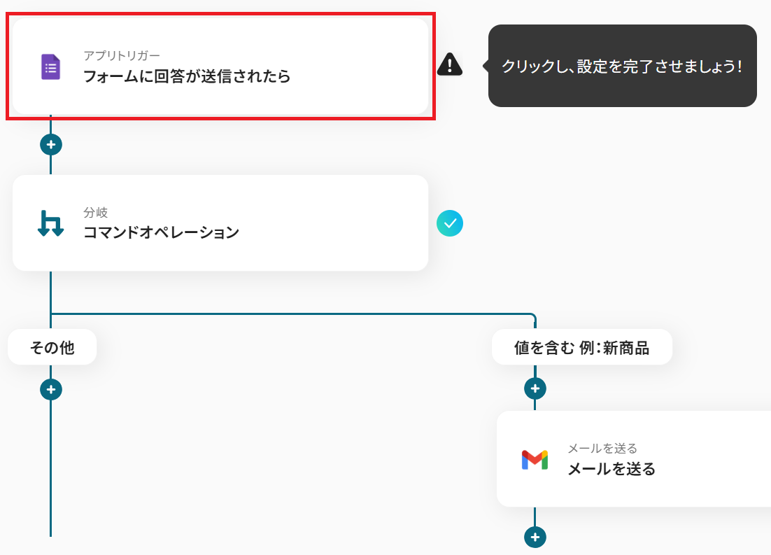 - Googleフォームのトリガー設定とGmailのアクション設定