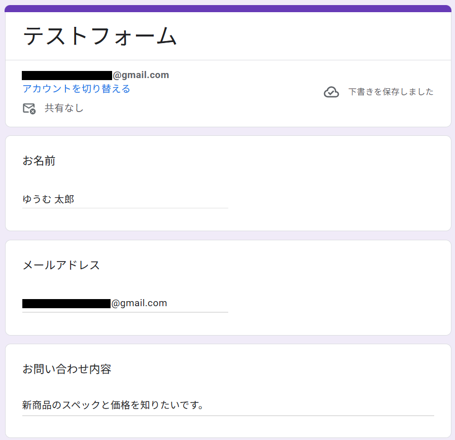 まずテストする準備として、フォームを作成して回答したものをご用意ください。