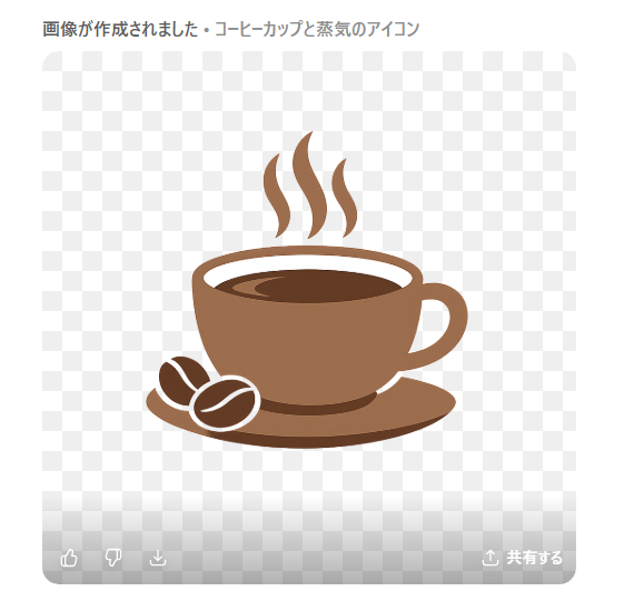 「アイコン」という単語を含める: 単に「コーヒー豆」と言うのではなく、「コーヒー豆のアイコン」と記載することで、AIがアイコンとして適切な構図を優先して 生成します。