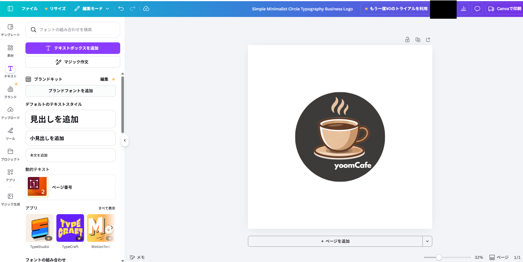 ステップ3:Canvaでデザインを完成させる 背景を消した透過画像をCanvaにアップロードします。 アイコンの周りにブランド名を入れたり、円形の枠を追加したりして、アプリアイコンとしての体裁を整えます。