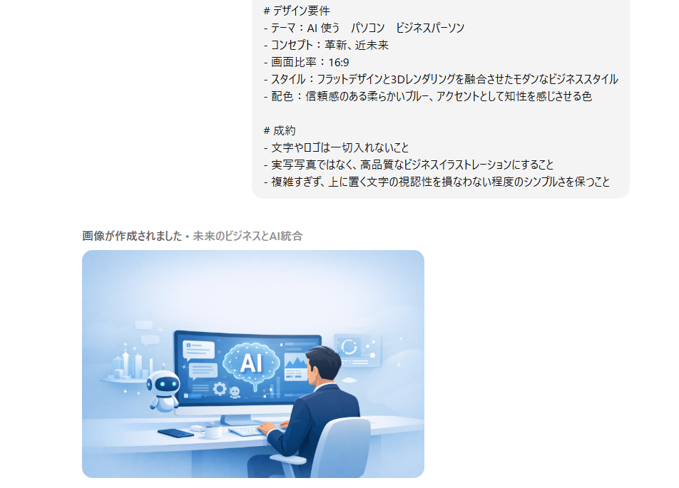 ChatGPT チャットボットとして優秀なChatGPTですが、画像生成においても、ユーザーの意図やターゲットに基づいて、深い思考を経てより文脈に沿った高品質なデザイン が生まれます。 生成過程において、前提として「考え抜くプロセス」が働くため、ただ単に画像を生成するだけではなく、背後にある意味やデザインの目的を理解したうえ で、最適なビジュアルを提供してくれるのが特徴です。