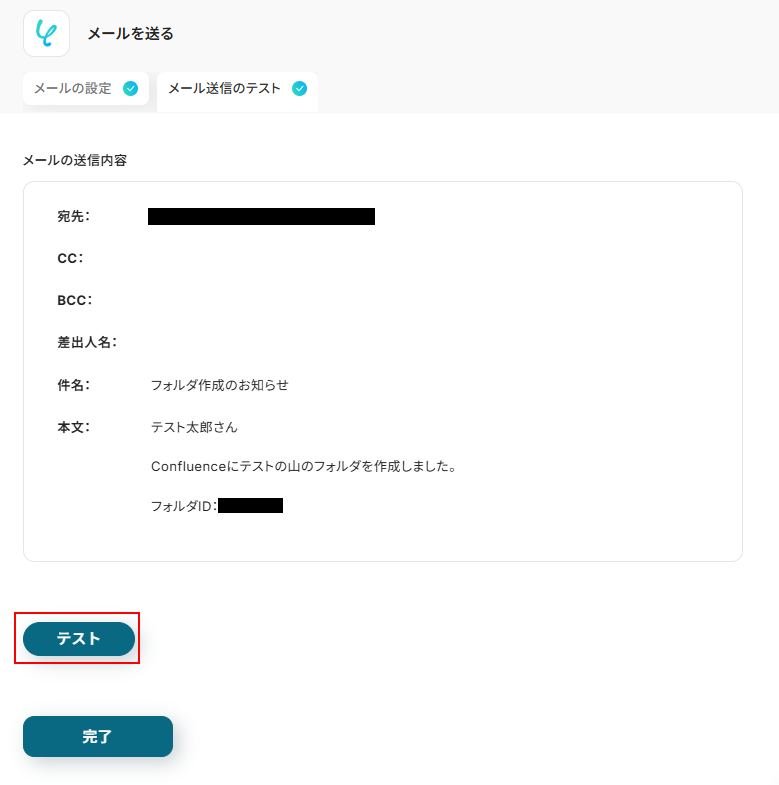 メールアドレスはこのあとに実際にメールを送信するテストに使用します。