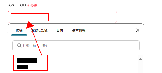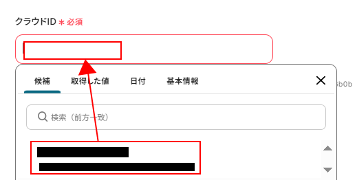 クラウドIDと同様に入力欄をクリックすると候補が表示されますので、使用したいものを選択してください。