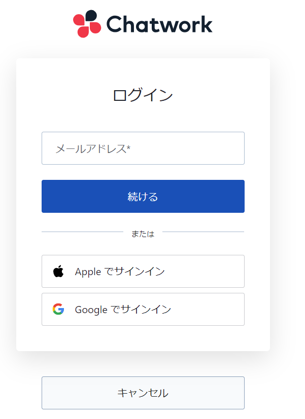 以下の画面が表示されたら、Chatworkにログインします。