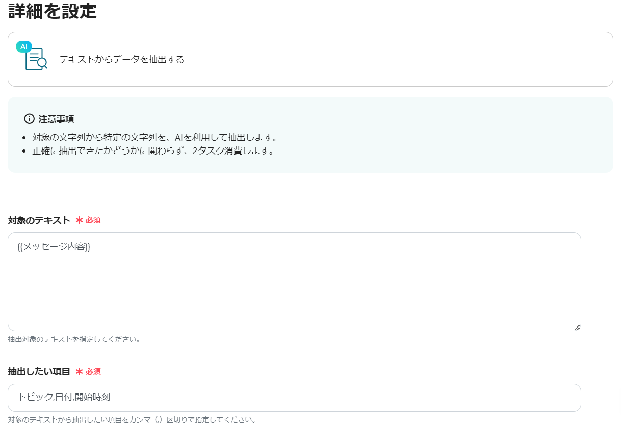 次にChatworkのメッセージ内容を抽出する設定を行うので、「テキストからデータを抽出する」を選択します。