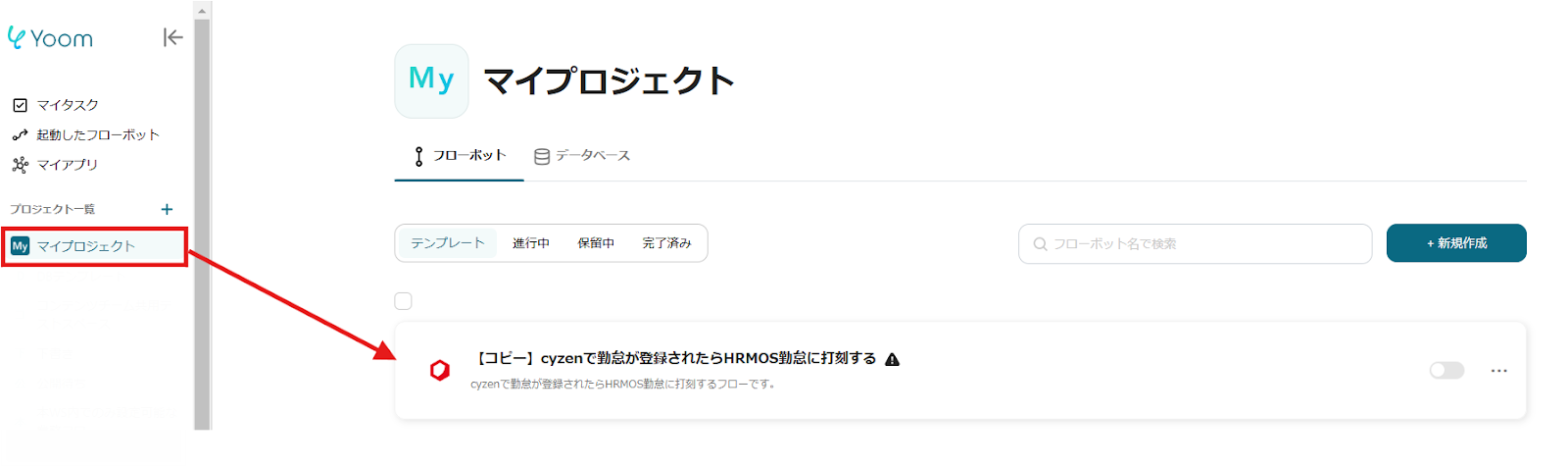 ここからは、Yoomのテンプレート【cyzenで登録した勤怠をHRMOS勤怠に自動打刻する】という連携フローを使って設定をしていきます。