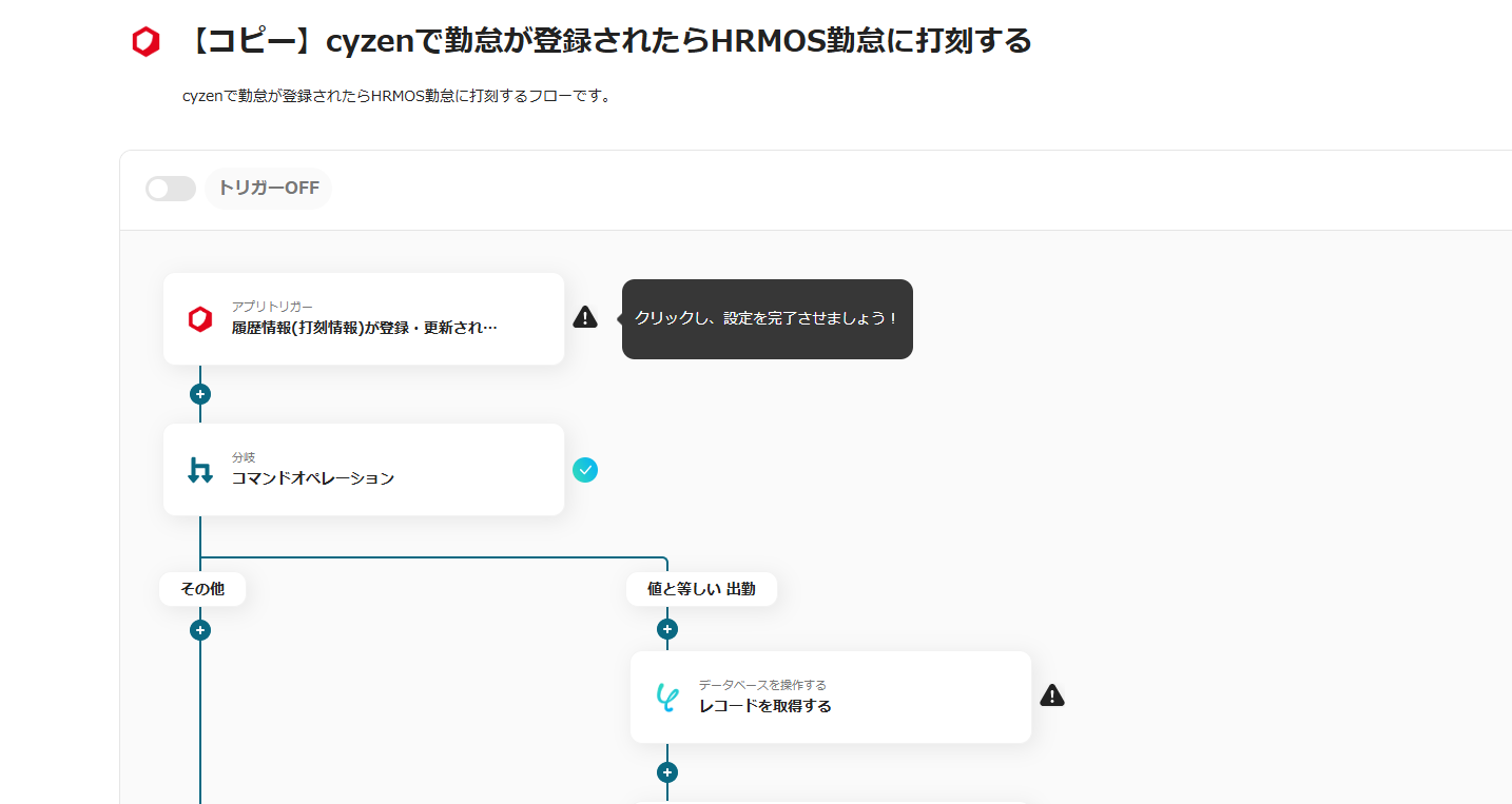 これで【cyzenに報告書が登録されたらHRMOS勤怠に通知する】というフローが完成です。