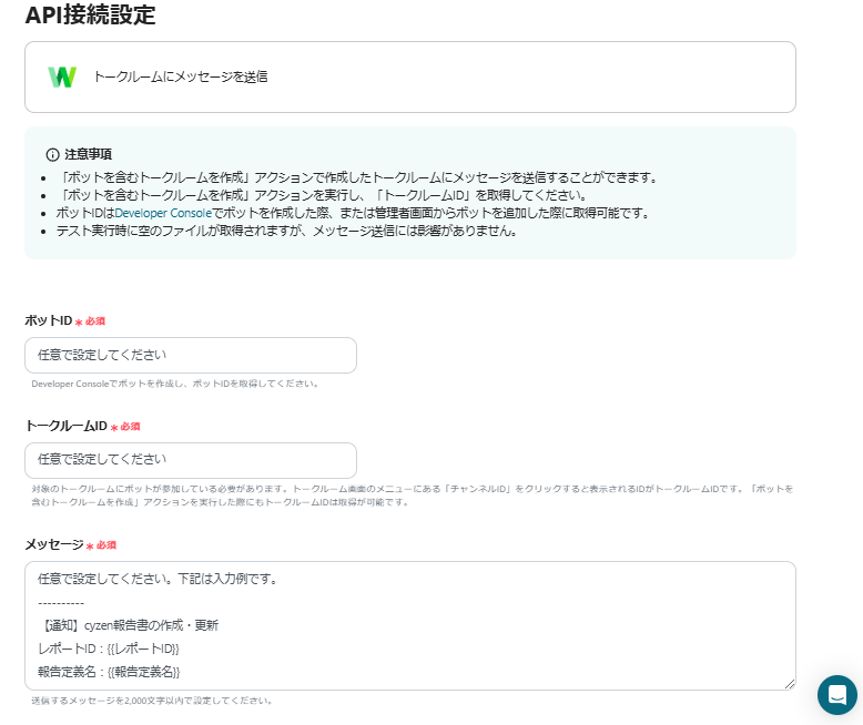 ・起点となるcyzenのトリガー設定と後に続くLINE WORKSの通知設定