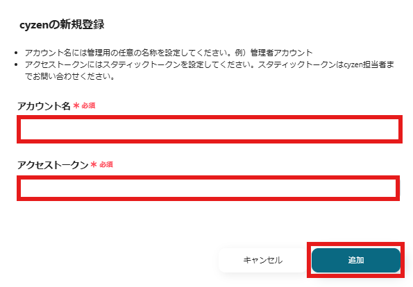 cyzenのマイアプリ登録を行います。