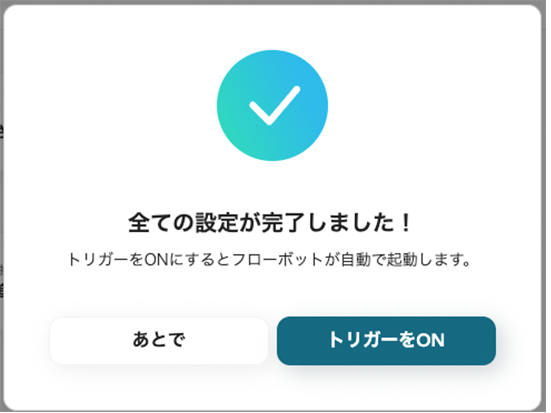 トリガーを【ON】にして、フローボットを起動しましょう。