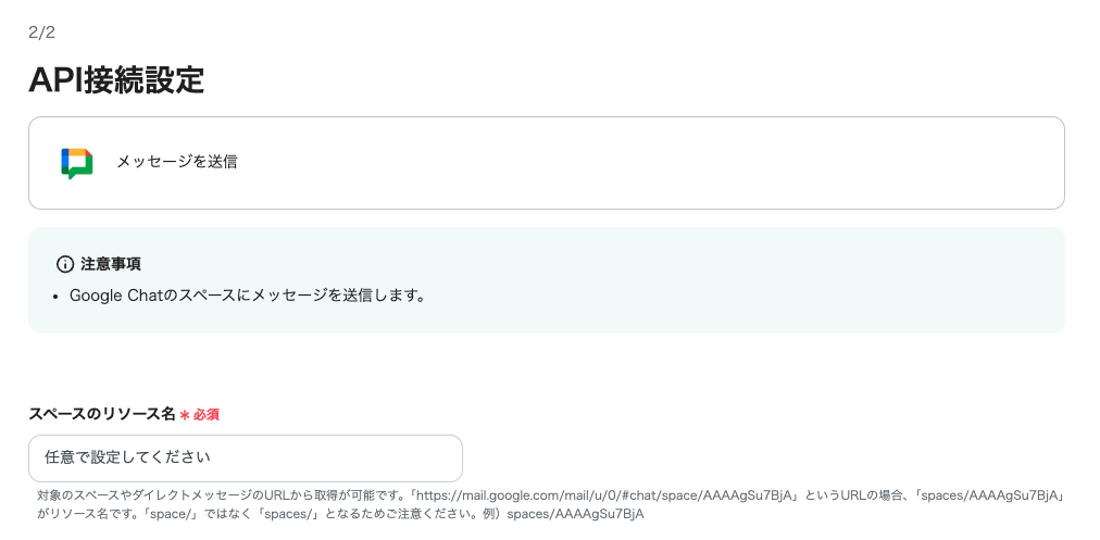 ・Google Chatとの連携はGoogle Workspaceの場合のみ可能です。詳細は下記を参照ください。