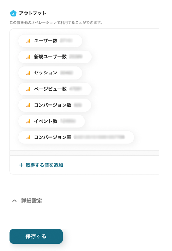 フローをカスタマイズすることで、Google アナリティクスのレポート内容を業務ツールやデータベースツールに追加し、分析に役立てることも可能です。