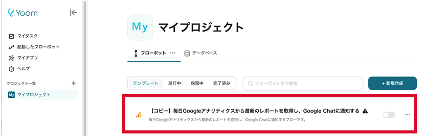 こちらのバナーをクリックします。Yoomワークスペースの「マイプロジェクト」にテンプレートがコピーされます。