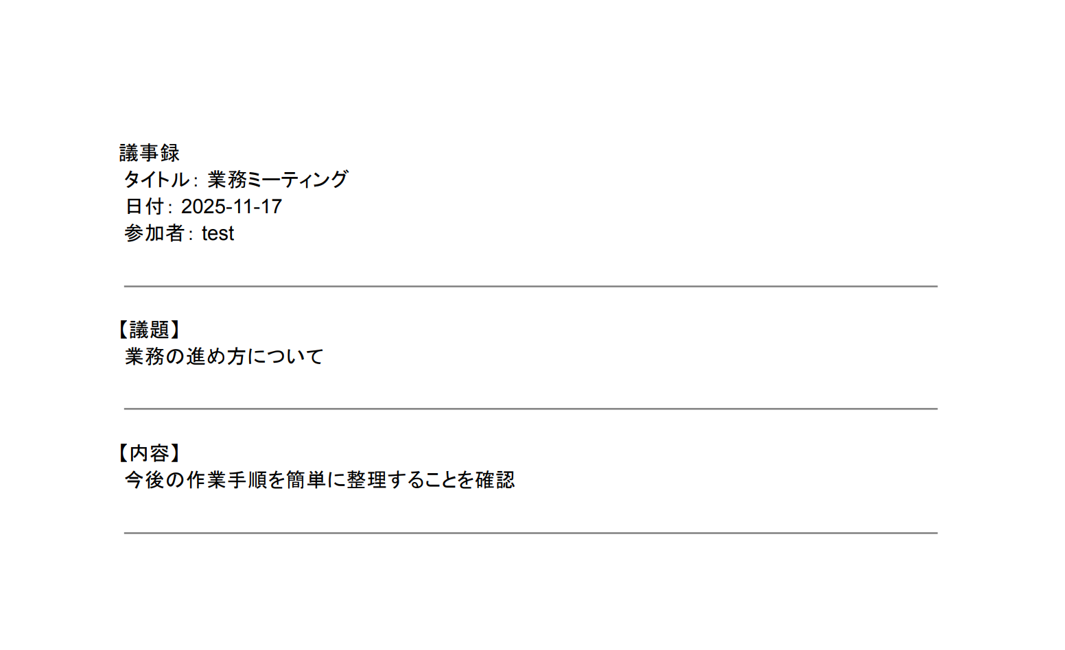 NotionとGoogleドキュメントで議事録を作成・管理している方 会議後の情報共有やドキュメント作成の効率化を検討している方 定型的なドキュメント作成業務を自動化し、コア業務に集中したい方 ■このテンプレートを使うメリット