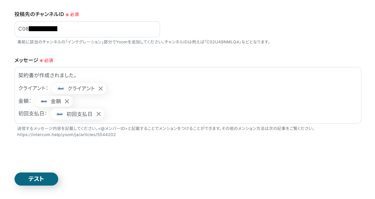 最後に、作成した契約書の情報をSlackに通知しましょう。