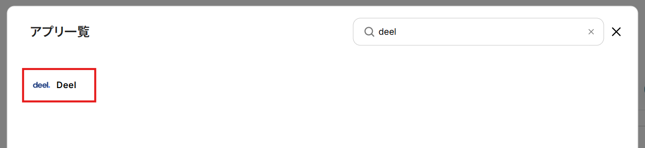 - アプリ一覧画面が表示されたら、右上の検索バーでアプリ名(ここではDeel)を検索して選択。