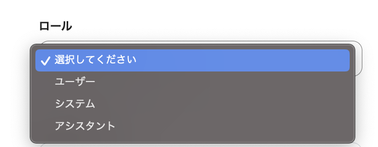 もしGPTにシステム指示を与えたい場合は、「システム(system)」を選ぶと、よりルールに従ったレスポンスが得られるでしょう。