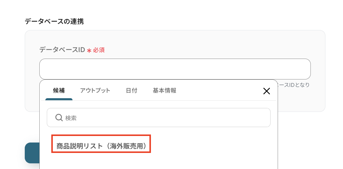 「データベースID」欄に、フローで使用するデータベースを入力します。