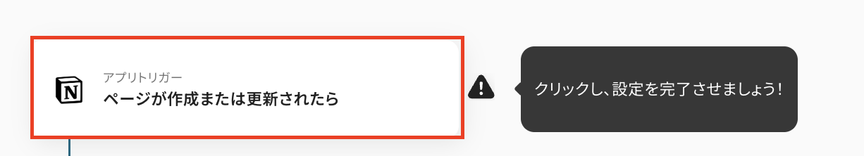 コピーしたテンプレートの「ページが作成・更新されたら」をクリックして、アプリトリガー設定から行いましょう。