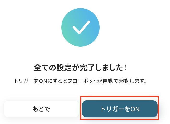 設定が全て完了しました!トリガーを「ON」にして、動作確認をしてみてくださいね。