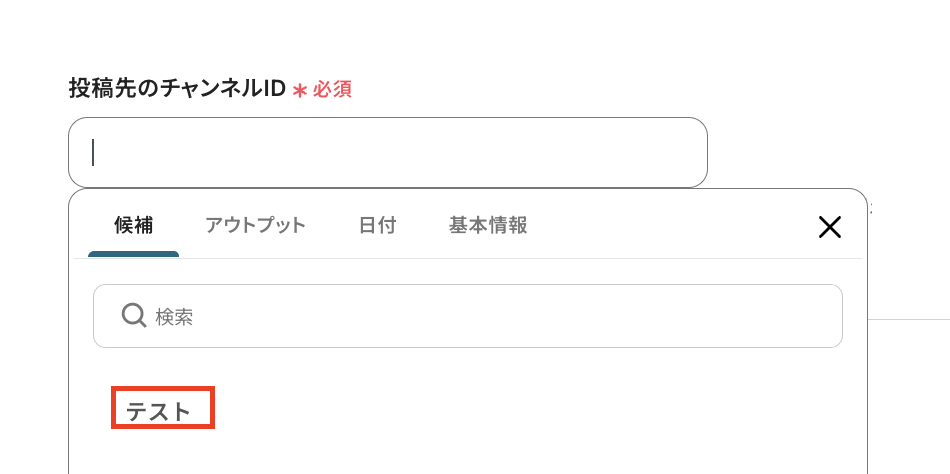 ここは、先ほどのアプリトリガー設定で取得したアウトプットを引用して設定しましょう。