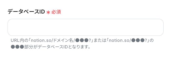 ※URL内の「notion.so/ドメイン名/●●●?」または「notion.so/●●●?」の●●●部分がデータベースIDとなります。