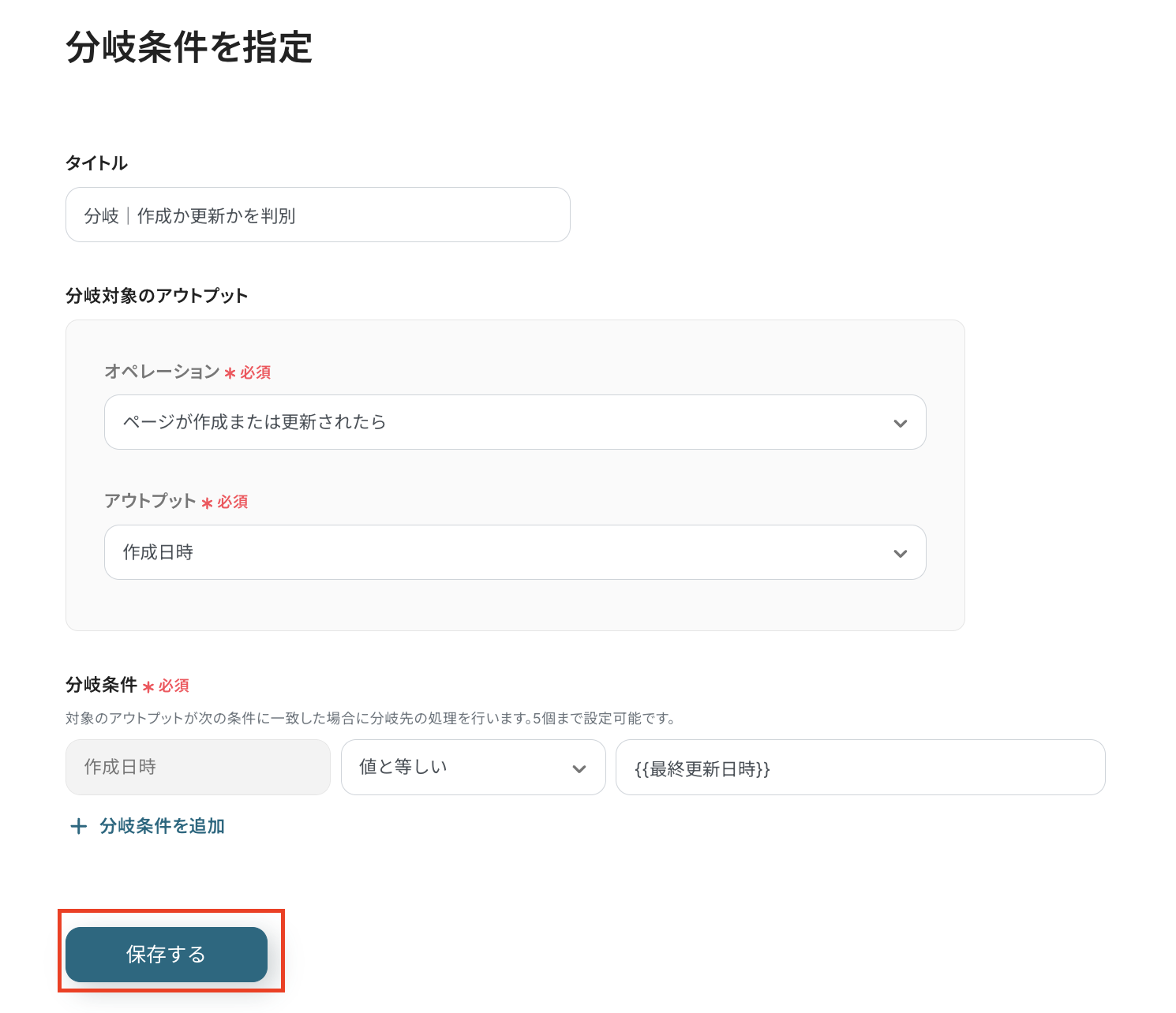 アウトプットが取得されていることを確認し、「保存」しましょう。