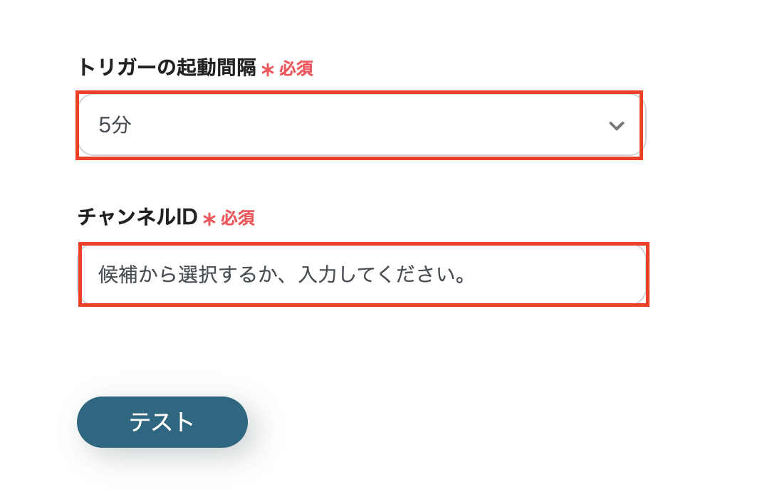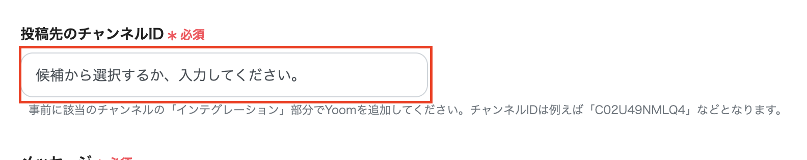 投稿先のチャンネルIDを候補から選択するか、入力しましょう。