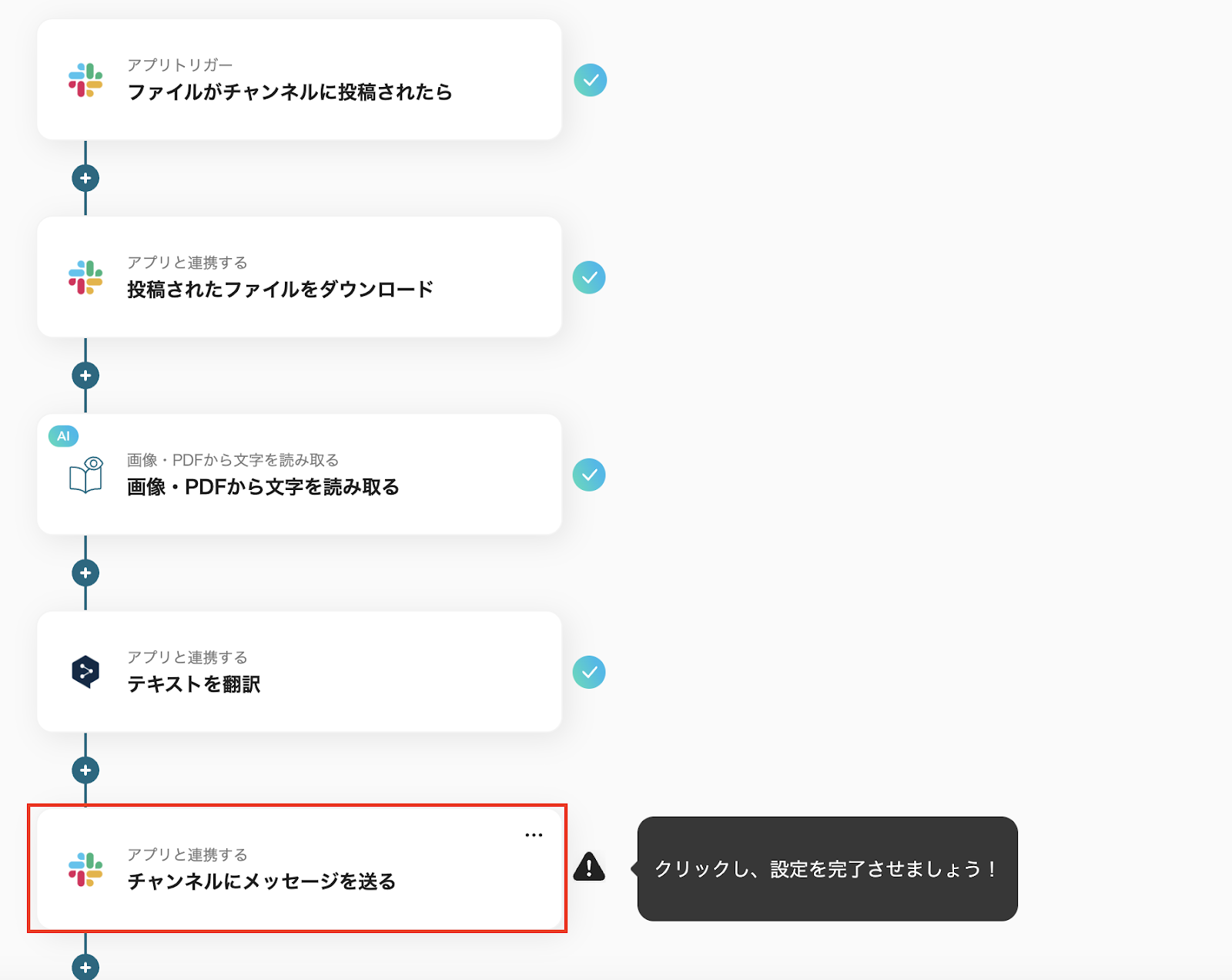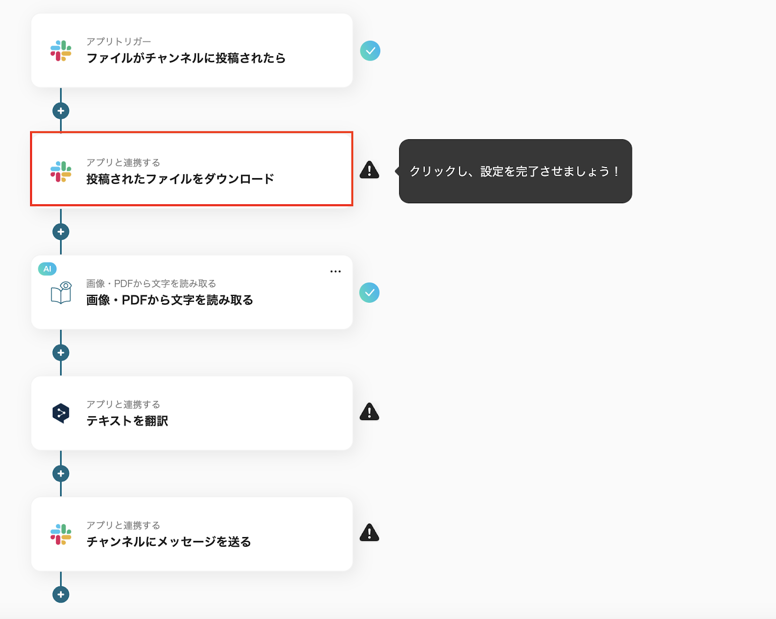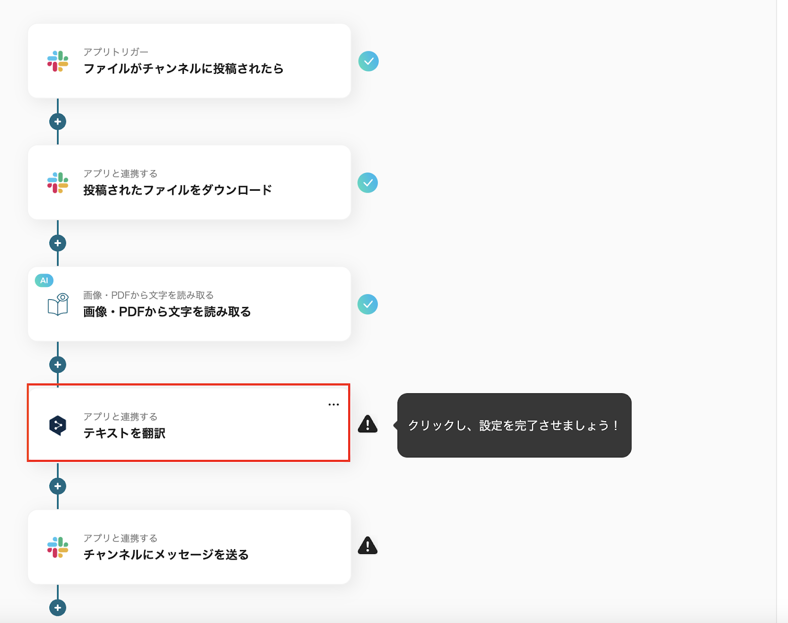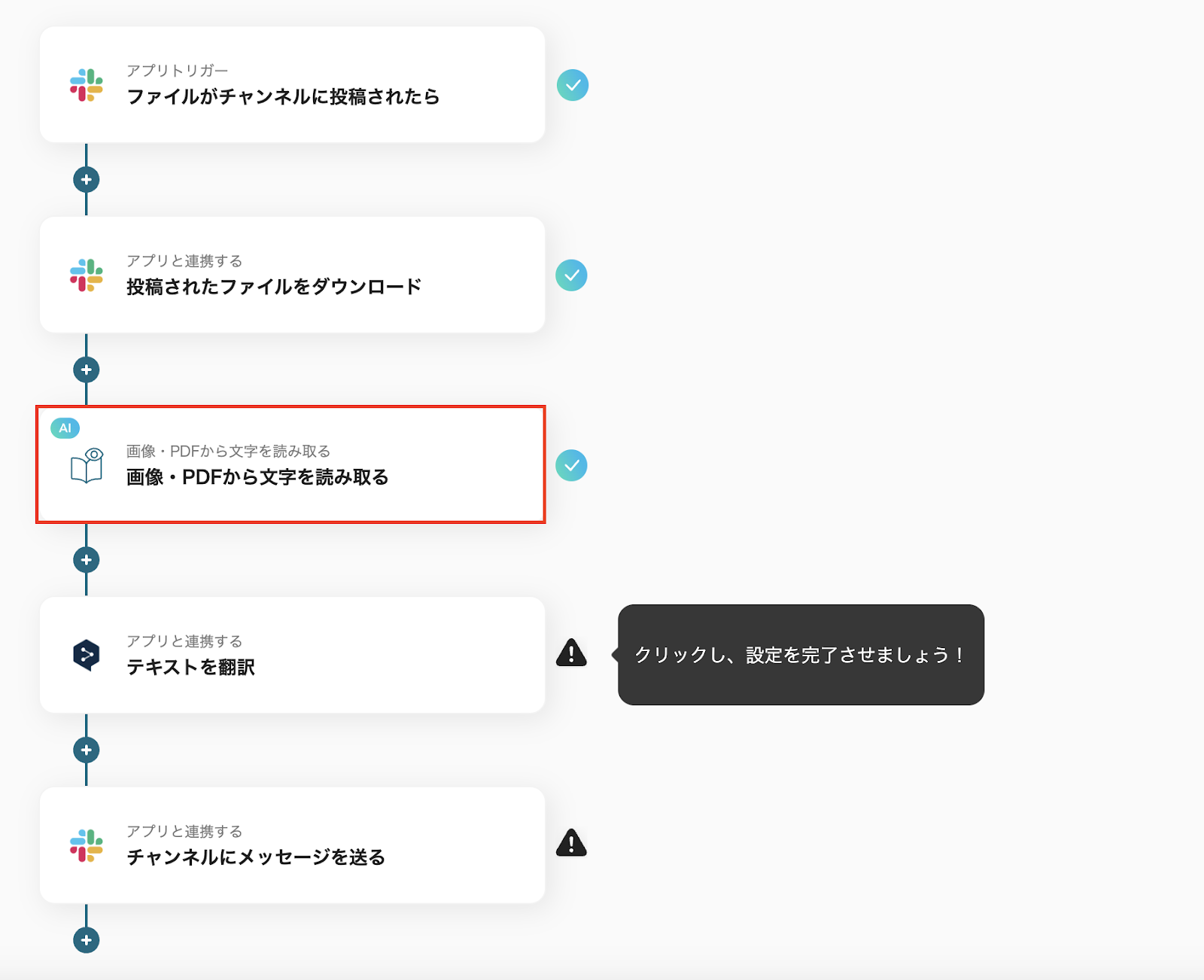 Slackに投稿された記事をOCRで読み取り、DeepLで翻訳し、Slackに通知するフローを作れば、業務効率が大幅にアップします。