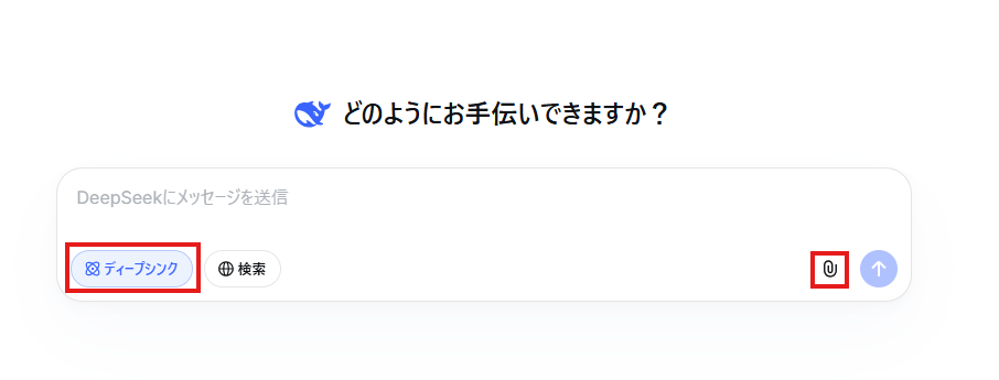 「ディープシンク」をオンにして、さらに「クリップマーク」をクリックしてPDFを添付し、プロンプトを入力したら送信します。