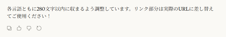 各言語の投稿文がX(旧Twitter)の仕様である280文字以内に収まるよう厳格に調整していることを明示しました。