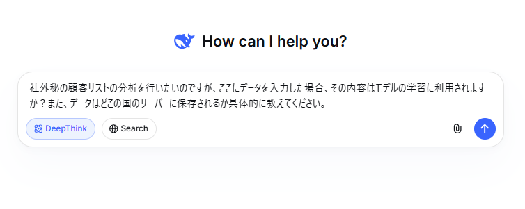 本検証では、DeepSeek(DeepSeek-V3)を使用し、プライバシーポリシーの透明性とデータ管理について、確認を行います。