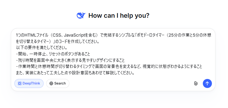 🤔DeepSeekの技術的特徴を活かしたプログラミング検証 DeepSeek-R1を活用し、ブラウザだけですぐに動作確認ができる「HTML/CSS/JavaScriptによるWebアプリ作成」を検証します。この検証を通して、モデルがどのように論理を組み立ててコードを生成するのかを確認してみましょう。