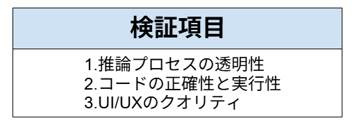 想定シーン AIによるフロントエンド実装の「実用性」と「デザイン思考」の両立を評価するため、Webサービス開発のプロトタイプ制作や、エンジニア採用におけるコーディング試験の自動評価ツールとしての活用を想定しています。