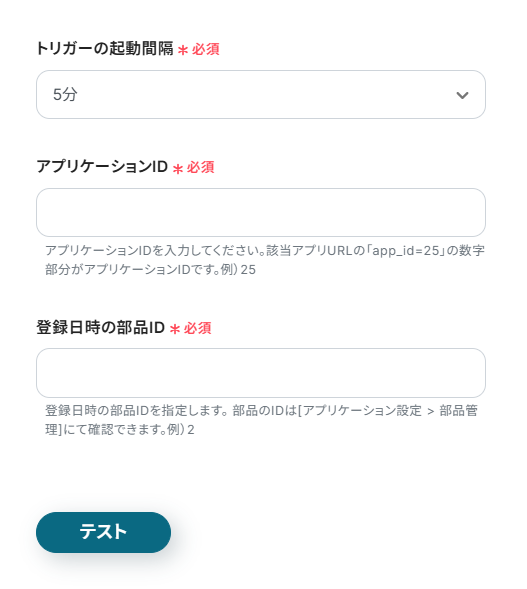 アプリケーションIDと登録日時の部品IDを注記に沿って設定します。