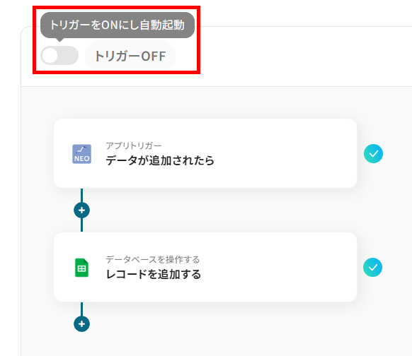 最後に、トリガーをONにすると、すべての設定が完了です。