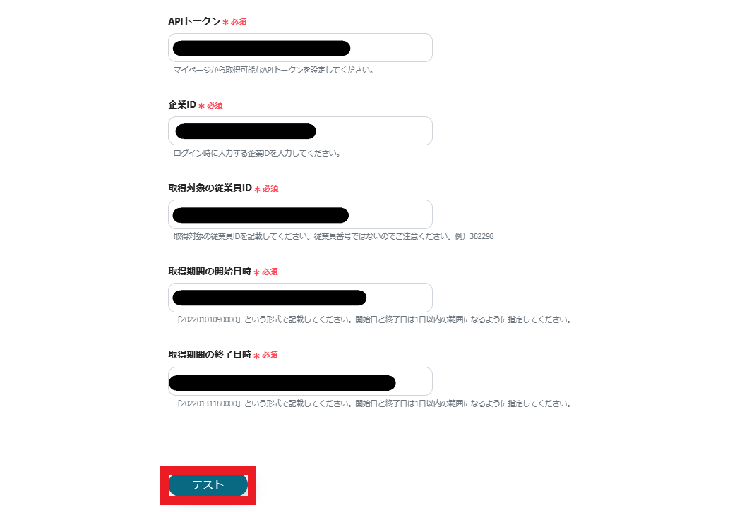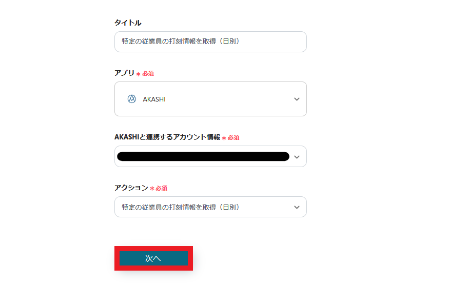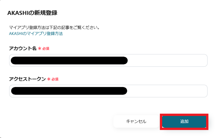 4.AKASHIと連携するアカウント情報を入力します。