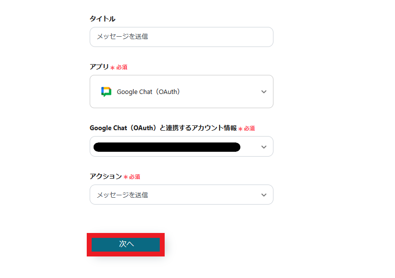 2.Google Chatと連携するアカウント情報を入力します。