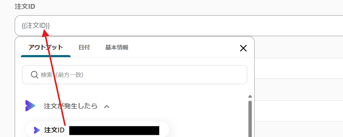 次に進み、追加するレコードの値を以下のようにアウトプットから設定していきます。