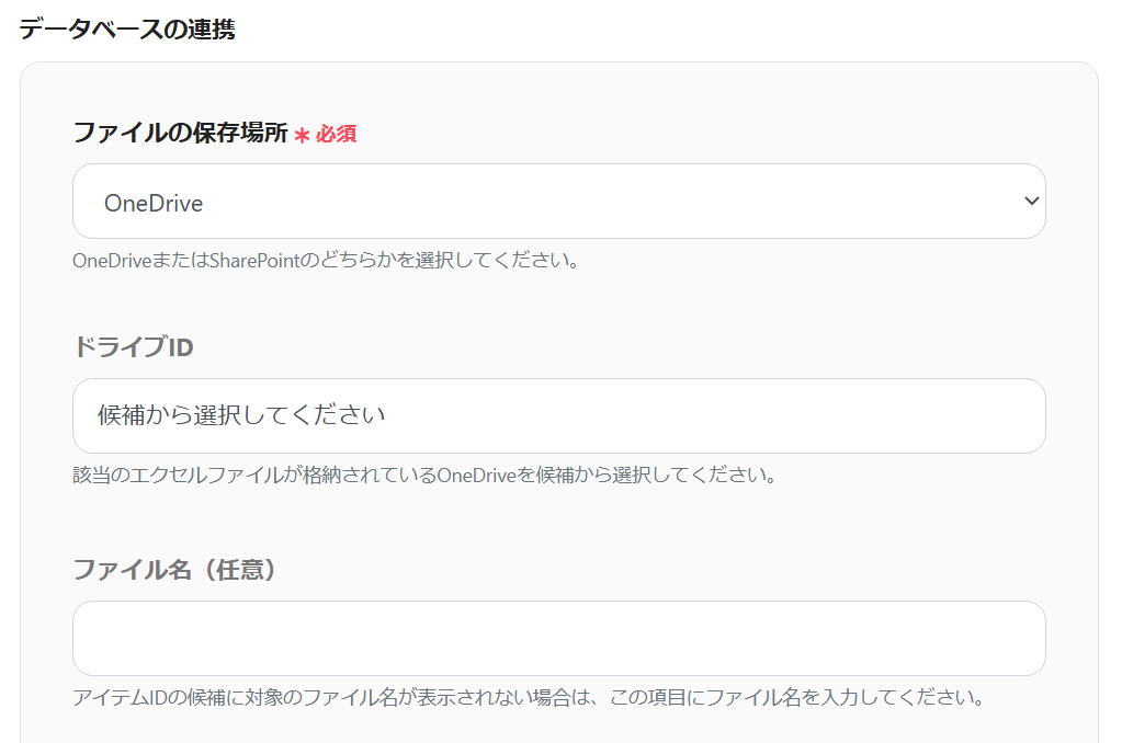 アクションはそのままで、データベースの連携をしましょう。
