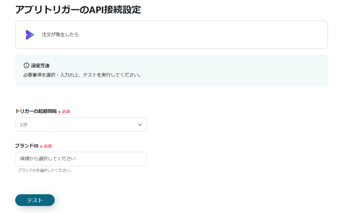 ブランドIDはアプリ登録ができていれば候補から選択できます。