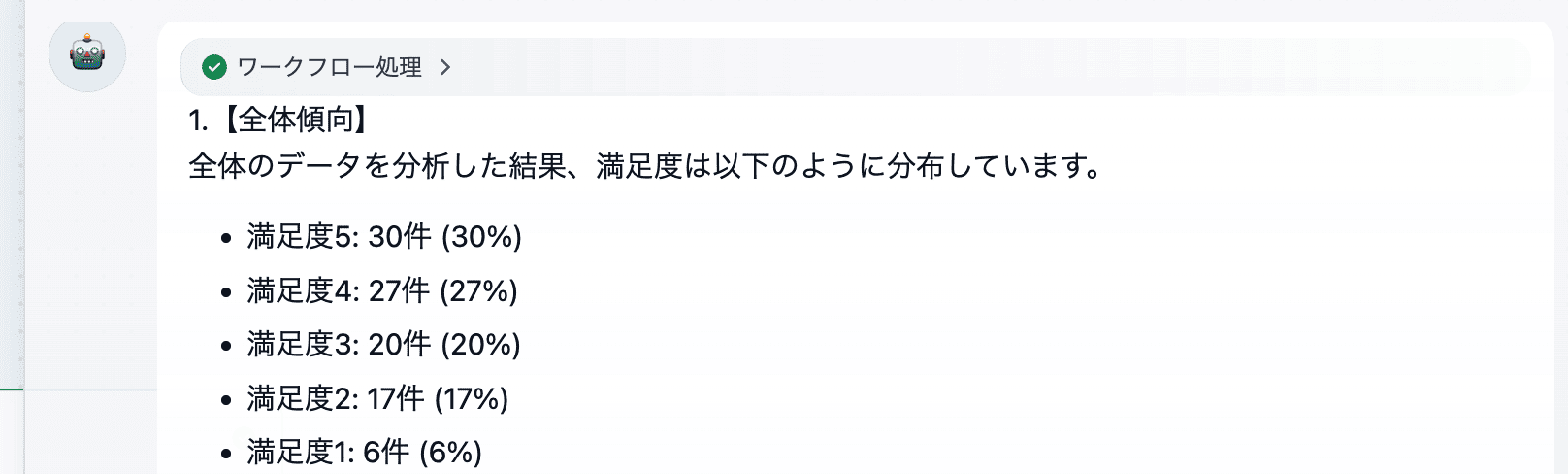 アンケート結果の満足度分布を集計させたところ、すべての数値が実際のデータと一致しませんでした。