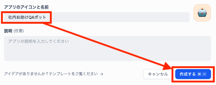 アプリの名前と説明を入力して、「作成する」をクリックします。
