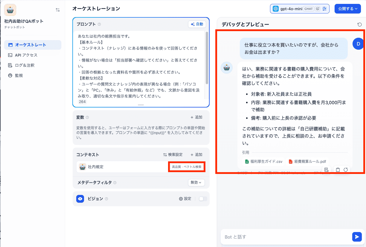 今回の検証で、Difyを使ったQAボットは業務で十分に活用できると感じました。