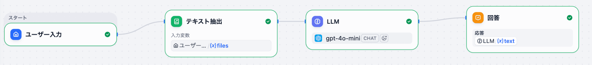 最初は「ユーザーがファイルを送る → LLMノードが読む」というシンプルな流れを想定していましたが、 LLMノードだけではファイルの中身をうまく読み込めず、エラーの原因を探すのに2時間以上かかってしまいました…。