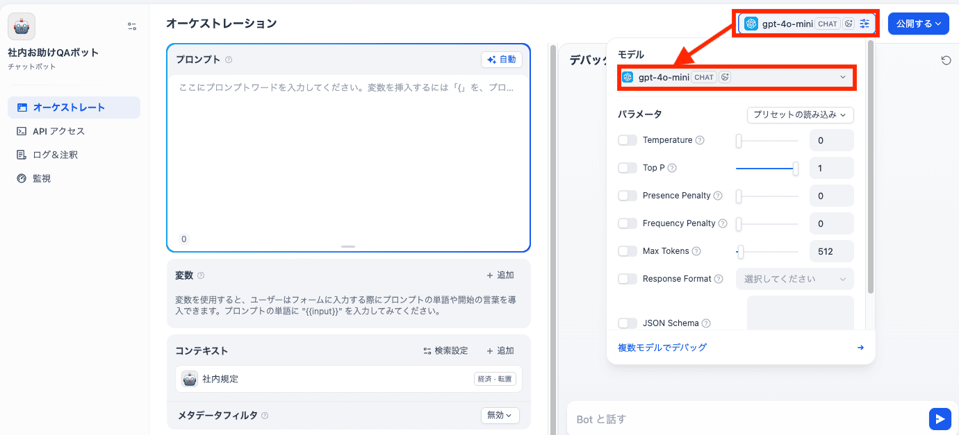 Difyは、情報の検証や検索だけでなく、AIの振る舞いそのものを調整できる点も魅力です。